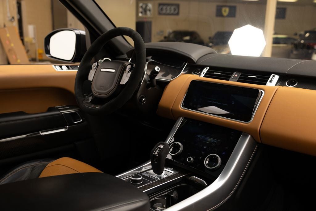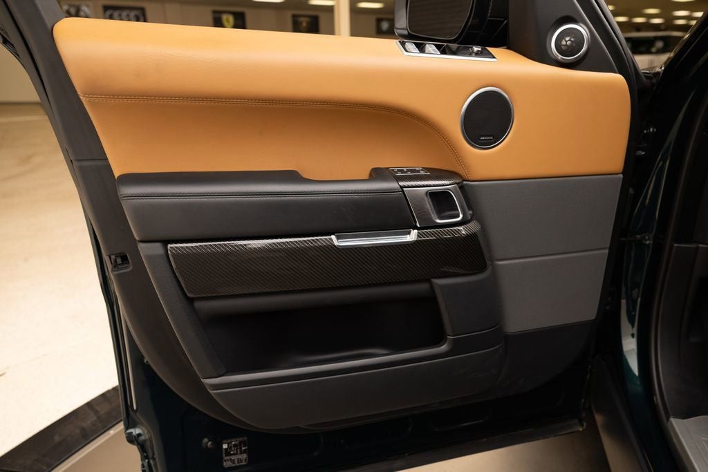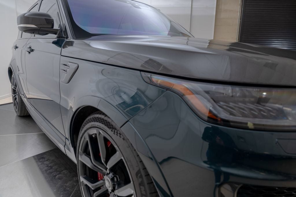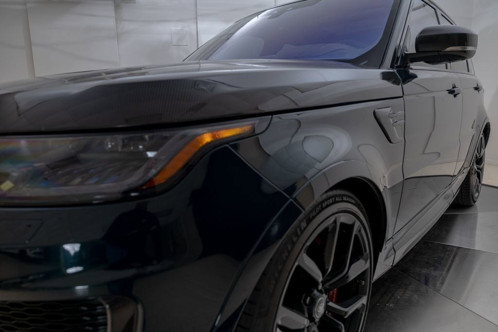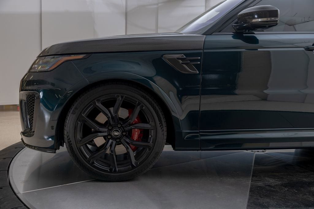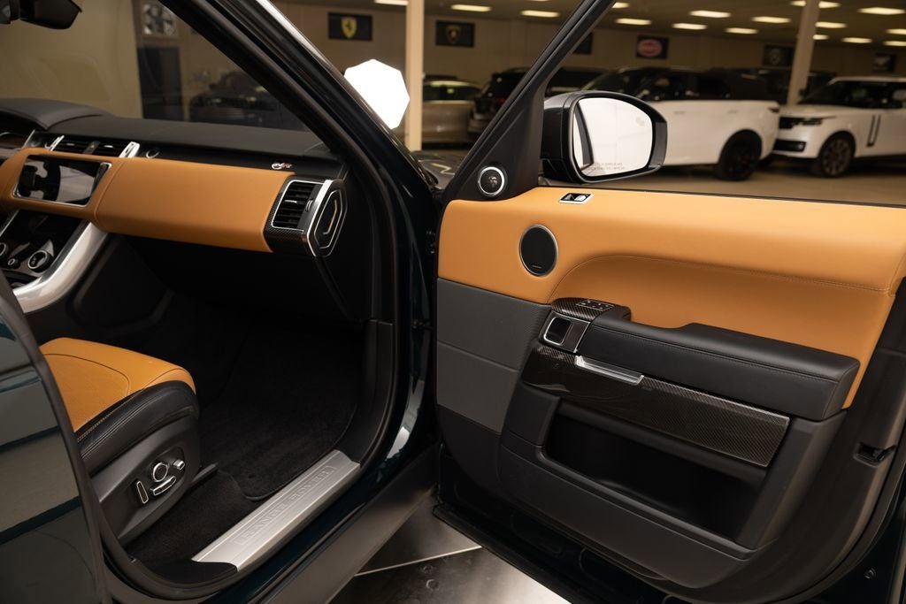 LOADED UP SVR IN SVO PREMIUM PALETTE GREEN ULTRA METALLIC GLOSS WITH 22 BLACK WHEELS, SVR CARBON PACK, DRIVE PRO PACK, 1700W MERIDIAN SOUND, CARBON ENGINE COVER, AND MUCH MORE. CALL IN ADVANCE TO SCHEDULE A VIEWING 248-970-7946. Range Rover Sport 5.0L S/C 575PS Petrol AWD SVR, SVO Premium Palette Green Ultra Metallic Gloss Paint ($4,550), Ebony Interior with Ebony Morzine Headlining, SVR Carbon Fiber Exterior Pack with Exposed Carbon, Extended Carbon Fiber Interior Trim, Carbon Fiber Engine Cover, 22 Style 5083 Gloss Black Wheels, Meridian Signature Sound System 1700W, Drive Pro Pack, Head-Up Display, Heated Windshield, Heated & Cooled Front Seats with Heated Rear Seats, Four-Zone Climate Control, Soft Close Doors, Tow Pack, Premium Interior Protection & Storage Pack, Center Console with Armrest & Refrigerator, Domestic 110V Power Sockets.