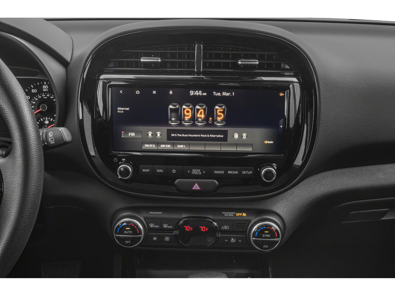 - Radio: AM/FM/MP3 Audio System -inc: UVO link, navigation, HD Radio, SiriusXM, 10.25" color touch screen, 6 speakers, support for Android Auto and Apple CarPlay, USB input, audio remote control, Bluetooth hands-free w/voice recognition and black shark fine type antenna