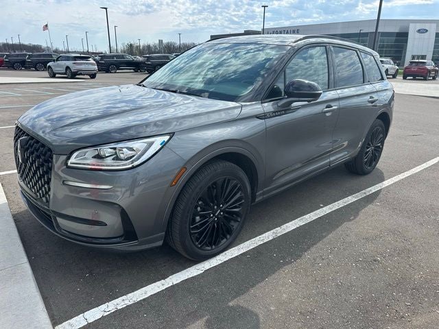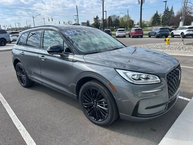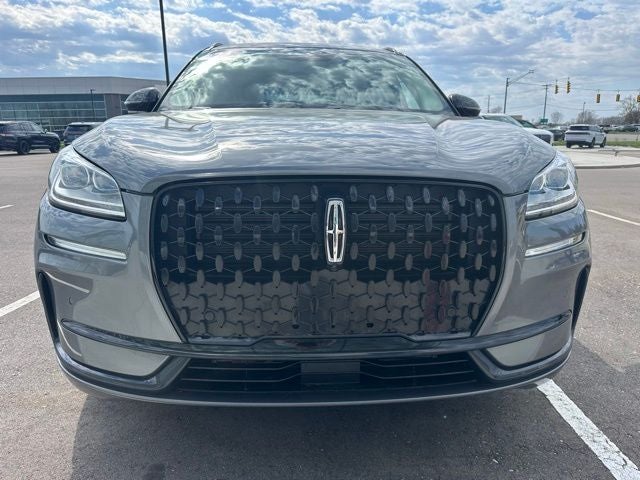 2023 Lincoln Corsair Reserve 4D Sport Utility Gray Metallic Certified. AWD Corsair Reserve, 4D Sport Utility, 2.0L Turbocharged, 8-Speed Automatic, AWD, Gray Metallic, Ebony Leather, 10 Speakers, 60/40 EasyFold Rear Seat w/Power Seatback Release, AM/FM radio: SiriusXM, Auto High-beam Headlights, Body-Color Exterior Elements, Brake assist, Electronic Stability Control, Equipment Group 201A, Frameless Auto Dimming Rearview Mirror, Fully automatic headlights, Hands-Free Liftgate, Heated Sideview Mirrors, Heated Steering Wheel, Heated/Ventilated Driver & Front Passenger Seats, Jet Appearance Package, Lincoln Premium Audio System Subwoofer Delete, Memory seat, Navigation system: Connected Navigation (3-year trial), Panic alarm, Panoramic Vista Roof w/Power Shade, Phone As A Key (PAAK), Pillar Black Exterior Elements, Power driver seat, Power Liftgate, Power Tilt/Telescoping Steering Column w/Memory, Radio data system, Rain Sensing Wipers, Rear Parking Sensors, Security system, SiriusXM Radio, Speed control, Universal Garage Door Opener, Wheels: 20 Black Aluminum, Windshield Wiper De-Icer, Wireless Charging Pad.