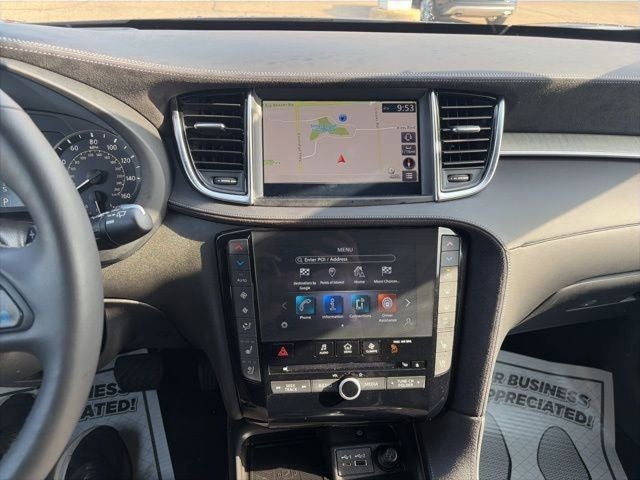 Thank you for considering Lafontaine INFINITI Nissan for your next vehicle! We are home of the Family Deal, and the buy 3, 1 free tire guarantee! All vehicles go through a rigorous inspection process, are serviced to the highest standards, and detailed with state of the art equipment before being placed on the lot. Stop by for your own family deal today! Check out the Features on this one Tow Hitch Package w/Motion Activated Liftgate, QX50 Autograph, INFINITI Certified Pre-Owned Certified, 4D Sport Utility, I4, CVT, AWD, Graphite Shadow, Graphite Leather, Auto High-beam Headlights, Auto tilt-away steering wheel, Auto-dimming door mirrors, Auto-dimming Rear-View mirror, Brake assist, Bumpers: body-color, Delay-off headlights, Driver door bin, Driver vanity mirror, Electronic Stability Control, Exterior Parking Camera Rear, Floor Mats, Front fog lights, Front reading lights, Garage door transmitter: HomeLink, Genuine wood door panel insert, Heated door mirrors, Heated steering wheel, Illuminated entry, Illuminated Kick Plates, Leather Shift Knob, Leather steering wheel, Literature Kit, Navigation system: INFINITI InTouch Navigation, Outside temperature display, Overhead console, Panic alarm, Power door mirrors, Power Liftgate, Security system, Speed control, Splash Guards (Set of 4), Spoiler, Turn signal indicator mirrors, Welcome Lighting w/Logo, 16 Speakers, 4-Wheel Disc Brakes, 5.846 Axle Ratio, ABS brakes, Air Conditioning, Alloy wheels, AM/FM radio: SiriusXM, Automatic temperature control, CD player, Climate Controlled Front Bucket Seats, Dual front impact airbags, Dual front side impact airbags, Emergency communication system: INFINITI InTouch (1-year complimentary trial), Four wheel independent suspension, Front anti-roll bar, Front Bucket Seats, Front Center Armrest, Front dual zone A/C, Heads-Up Display, Heated front seats, Heated rear seats, Knee airbag, Low tire pressure warning, Memory seat, Occupant sensing airbag, Overhead airbag, Passenger door bin, Passenger vanity mirror, Power driver seat, Power moonroof, Power passenger seat, Power steering, Power windows, Quilted Semi-Aniline Leather-Appointed Seat